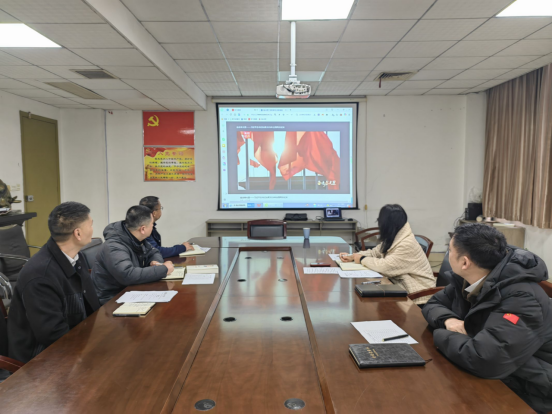 会上,全体人员观看全国两会视频:奋进春光里——习近平总书记出席2026年全国两会纪实。