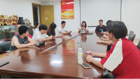 本次会议主要围绕着啦啦操赛前准备事宜进行开展。会议伊始,梁老师强调了啦啦操比赛作为文化艺术节闭幕式的重要性,希望各二级学院负责人高度重视。随后,梁老师对此次啦啦操比赛的流程、人数、服装、音乐、教练等赛事相关事项作出了具体要求,并强调了各二级学院需按时提交啦啦操报名表。最后吴老师强调了啦啦操舞蹈动作的规范性,提醒同学们训练时注意安全,不要盲目追求动作的难度。