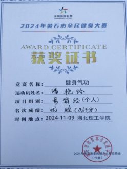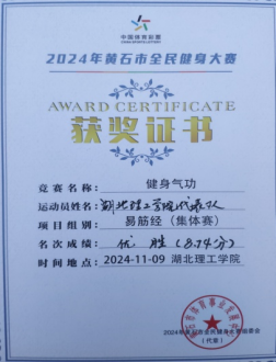 此次黄石市健身气功大赛的成功举办,进一步推动了健身气功在黄石市的普及和发展。健身气功作为一种传统的健身方式,具有强身健体、调节身心的作用。通过这次大赛,更多的人了解到了健身气功的魅力,相信在未来,会有越来越多的人加入到健身气功的队伍中来,共同为健康黄石、活力黄石贡献自己的力量。 (通讯员 施秀华)