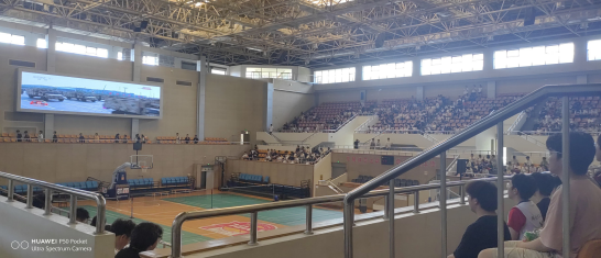 师生齐聚体育馆同屏共看纪念中国人民抗日战争暨世界反法西斯战争胜利80周年大会现场直播