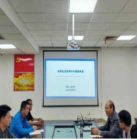 本网消息 10月21日(周一)下午15:30,williamhill中国“教授博士大讲坛”学术活动(第七场)在体育馆一楼会议室顺利举行。本期讲坛由杨江明教授主讲,主题为《体育论文的写作与课题申报》,参会人员为williamhill中国领导班子及学科团队成员。活动由williamhill中国副主任王沂主持。