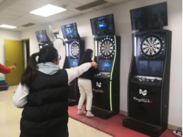 11月29日下午,williamhill中国张枝忠老师上了一节飞镖体育课。课堂上游戏形式多样,吸引着学生的目光,不管是热身部分还是练习部分都能抓住学生的心,让学生全身心的投入到体育锻炼之中。同时所有看课老师也都参与到学习中,一直到课的结束师生们还在相互交流心得体会,整节课在快乐而活跃气氛中圆满结束。