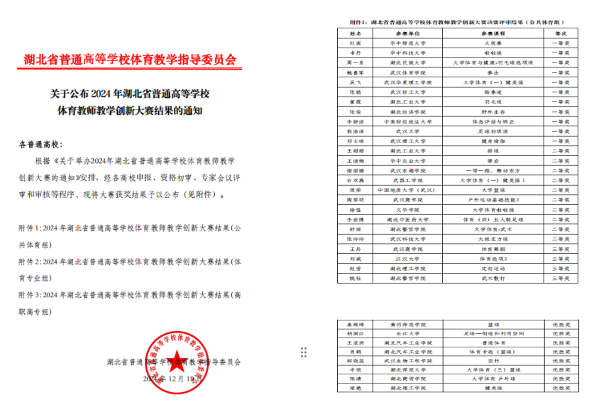 喜讯!我校获湖北省普通高等学校体育教师教学创新大赛三等奖