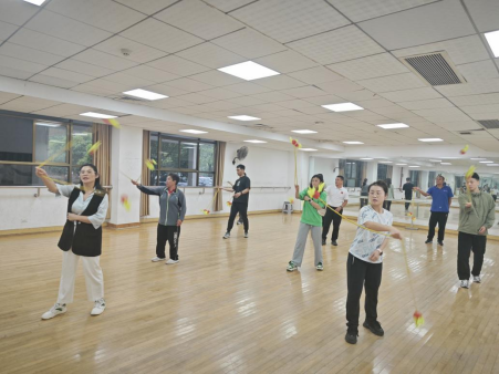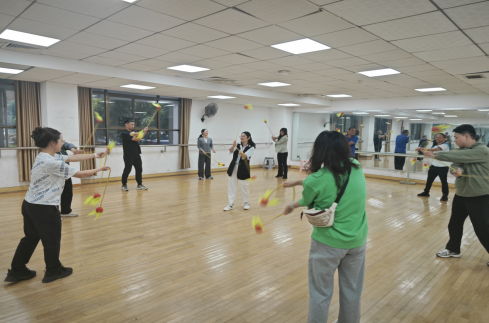 今天江玲玲老师带领教研室的全体成员学习了流星球的几个基本技术动作,领略了这项运动的独特魅力,丰富了老师们的专业技能。 (通讯员 江玲玲)